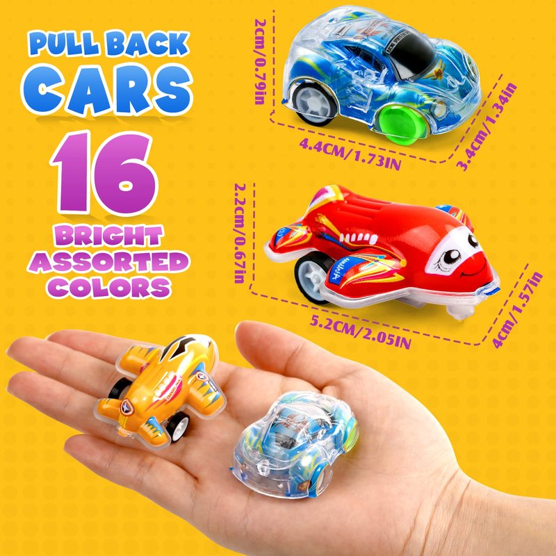 50 pcs pull back cars pack will be fashionable for child birthday gifts, halloween, weddings, christmas stocking fillers, kid's novelty gifts, party bag fillers and more!