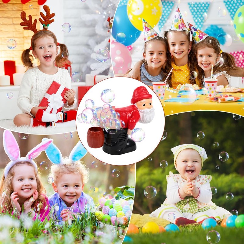 - Unique Gift & You Will Get: Present this entertaining Santa Bubble Machine to your beloved child, making the gift unforgettable with their laughter and magical bubbles! You will receive: 1Santa Bubble Machine, 1bottle of bubble solution. Each Santa Bubble Machine is nestled in a festive colored box, making it an ideal gift for friends, family, or hosts of holiday gatherings