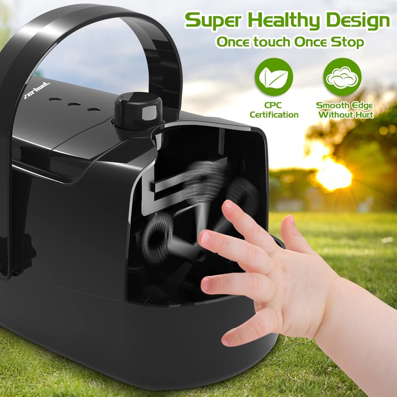 - 【Top Quality Materials & Safe Design】Made From Durable & High Quality ABS Material With Superior Toughness And Rust Protection, This Bubble Maker With Official CPC Toy Safety Certification Won't Be Harmful To Kid, Toddlers ,Pets And Adults. Upgraded And Special Safe Design: Once Touch The Spinning Wands, And The Bubble Machine Will Once Stop Working.