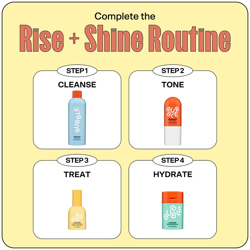 Put your best face forward with Bubble's Day Dream anti aging, Vitamin C face serum! This super unique serum is made up of a combination of radiance-boosting ingredients to soften texture, make skin dreamier and amplify radiance. Niacinamide, Alpha Arbutin and Plant Derived Ceramides all play an essential role giving your face a daily dose of brilliance. Day Dream can be used after cleansing and before moisturizing and SPF. Don't let this step intimidate you! Keep it simple by choosing Day Dream and one more product that addresses your individual skin concerns. We searched for preppy skincare products made specifically for youthful skin and found…nothing. Now, we’re shaking up the face aisle with dermatologist-developed scientific skin care that’s made of nature and formulated to deliver face-changing results.