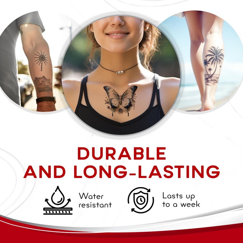- Durable and Long-Lasting: Our custom temporary tattoo papers are designed to withstand water and daily wear while still looking vibrant. This custom temporary tattoo paper ensures that your designs remain fresh and fun for as long as you want.
