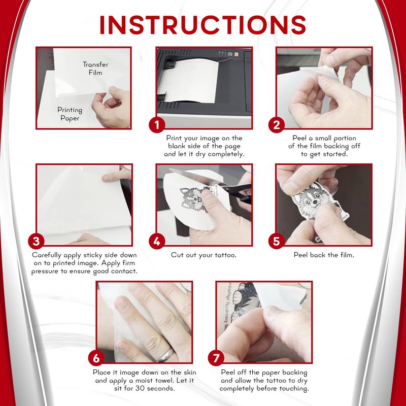Our standard 8.5"x11" sheets fit seamlessly in any laser printer, making it incredibly convenient for you to create customized tattoos right at home. No complicated setups or special equipment are required! Just load the sheets, choose your design, and watch as your artistic vision comes to life.