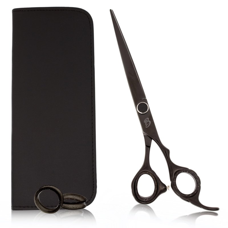 Bucchelli 6.5 Inch Hair Cutting Scissors Professional - Japanese 440A Black Barber Shears - Micro Bevel Edge with Adjustable Tension Knob - Hair Shears Black (Black Right 6.5")