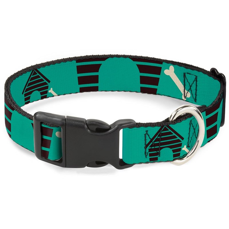 - Style: Buckle-Down Plastic Clip Collar - Dog House & Bone Turquoise/Brown - 1" Wide - Fits 9-15" Neck - Small
