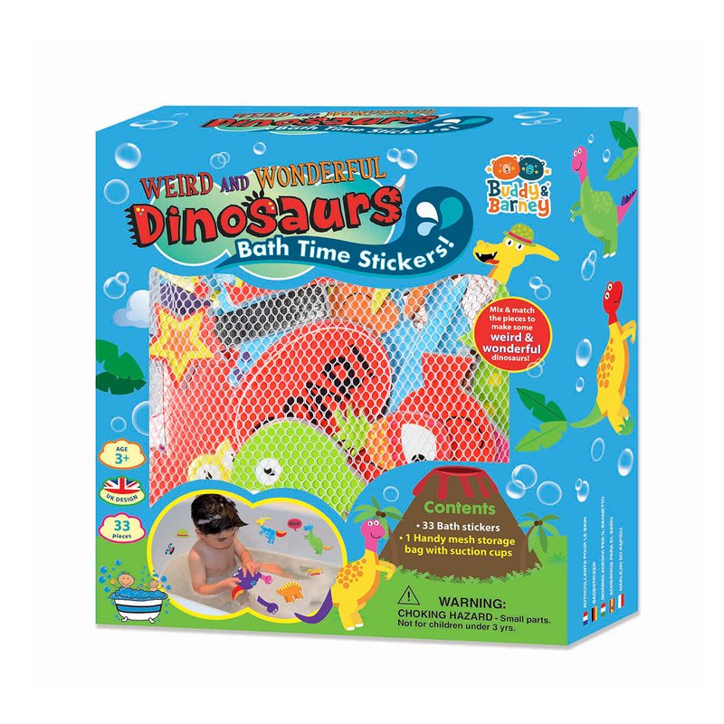 BUDDY & BARNEY Weird & Wonderful Dinosaurs Bath Stickers, Dinosaur Foam Stickers Bath Toy for Children 3+, Pack of 33 Reusable Dino Stickers, Bathtub, Tub, Shower, Boys, Girls, Kids