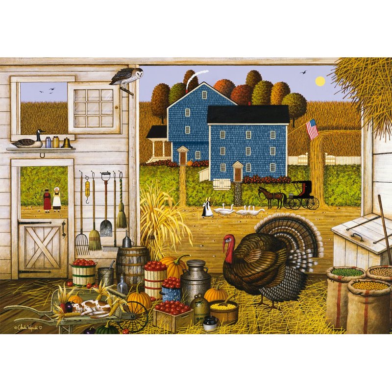 Buffalo Games - Charles Wysocki - Turkey in The Straw - 500 Piece Jigsaw Puzzle for Adults Challenging Puzzle Perfect for Game Nights - Finished Puzzle Size is 21.25 x 15.00