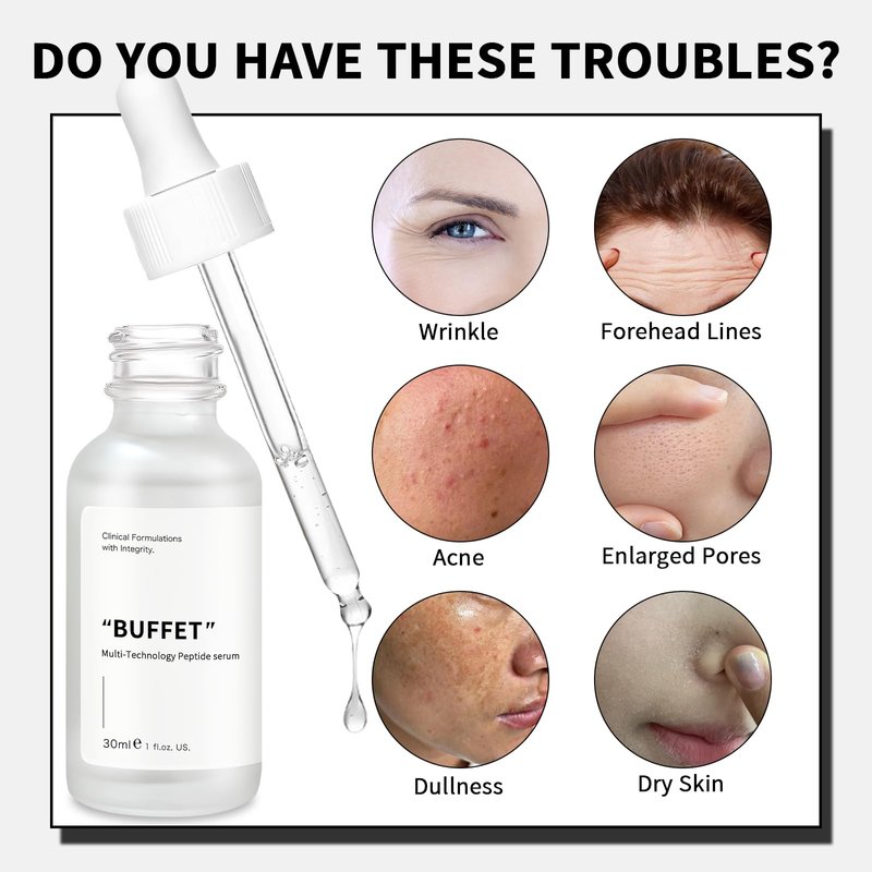 - Anti-Aging Serum: Buffet peptides serum is made from a variety of natural peptide ingredients designed to hydrate and nourish the skin, targeting a wide range of signs of aging for anti-wrinkle and anti-aging skincare needs