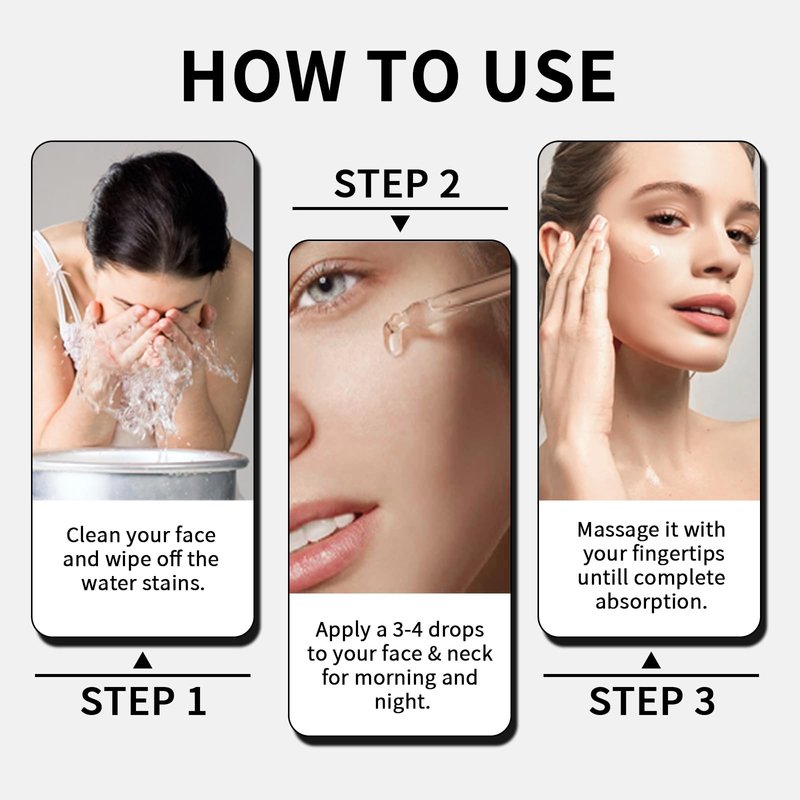 - Daily Use: Serum as a necessary skincare routine, after cleansing only 3-5 drops can be applied to the whole face and massaged until absorbed. Persist in using it for better results