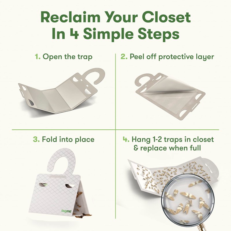 - Fuss-Free!: Our closet traps are super easy and convenient. Simply peel off protective film, fold, tuck tab, and place where those clothes moths hide.