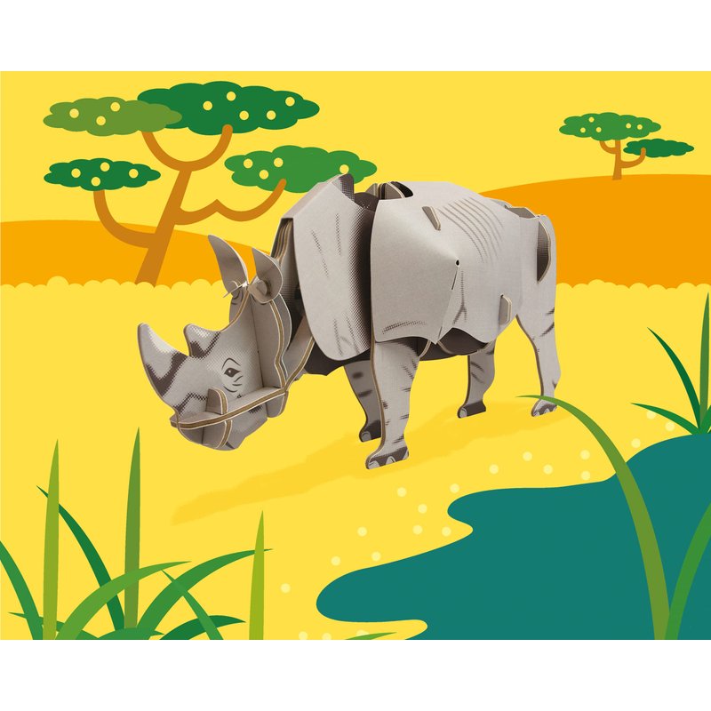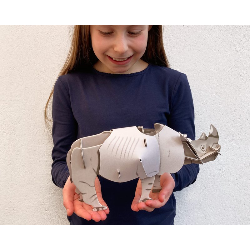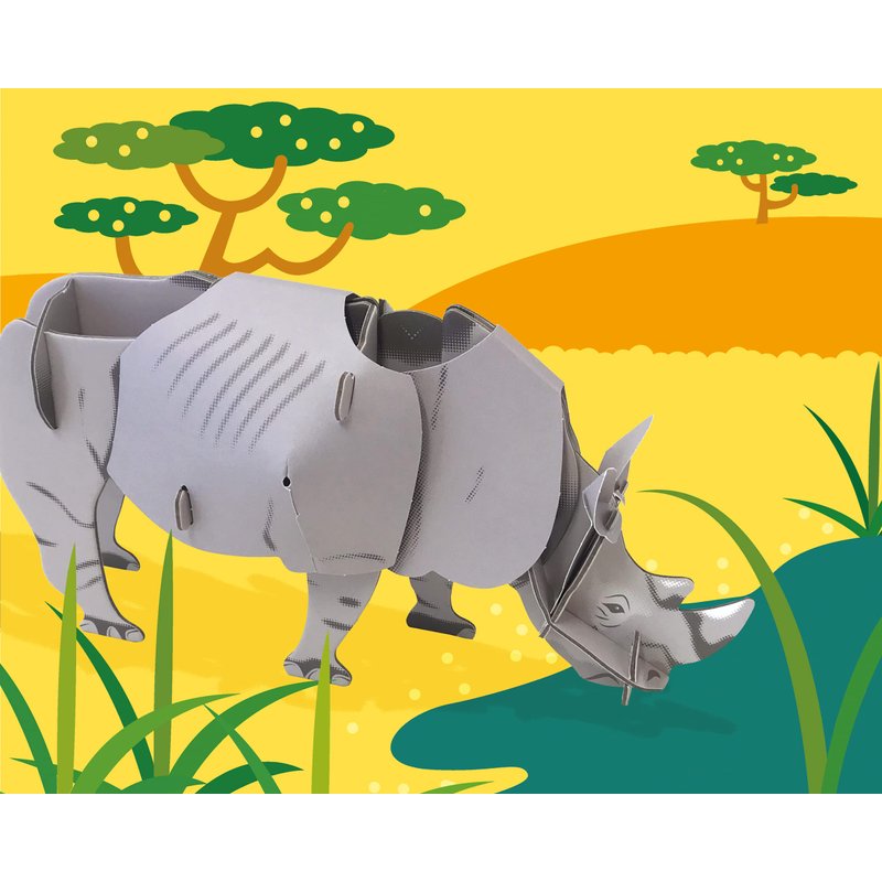 - CONTAINS – 20 pieces. Simply press out the colourful cardboard and paper detailed parts, follow the instructions to assemble and construct your 3D moving kit by slotting together to form your very own true-to-life White Rhino. No glue needed! Contains a fact stand helping children understand more details about this endangered species the White Rhino and its outdoor habitat.