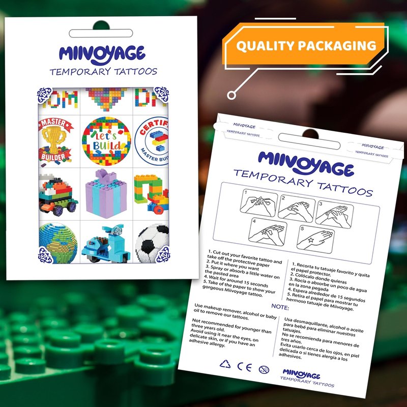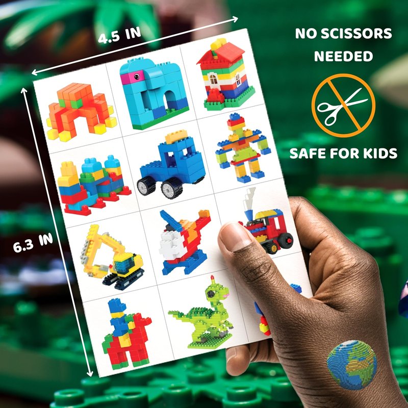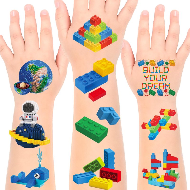 - 💙IDEAL SIZE: The size of each building block temporary tattoos sheet is 5.3 * 7.1 inches. One size fits kids
