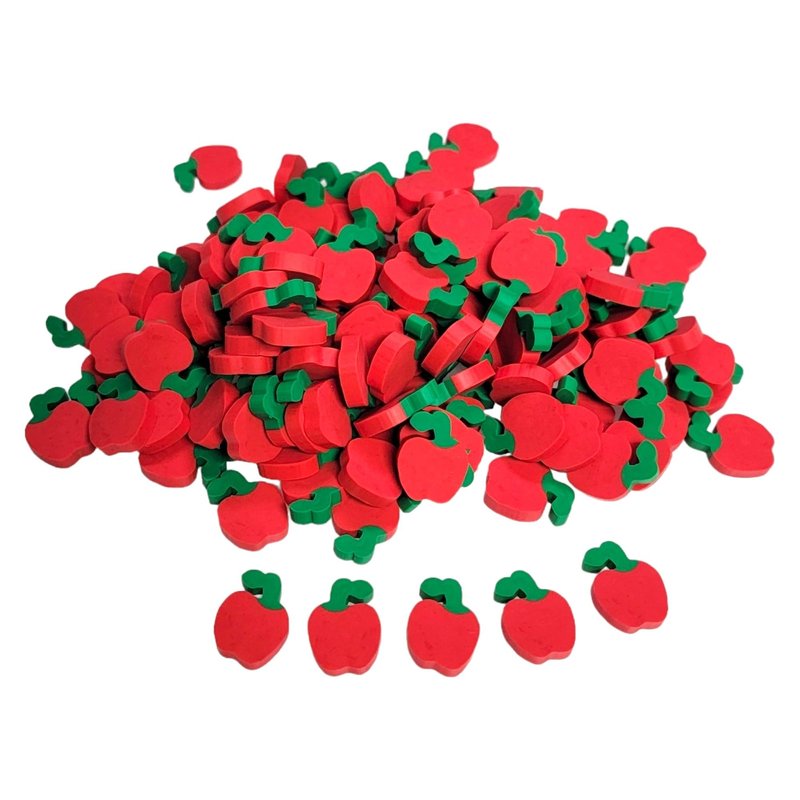- Indulge in a burst of fruity charm with our Bulk Mini Red Apple Pencil Erasers! This set of 144 delightful pencil erasers brings a touch of whimsy to your writing or drawing endeavors.