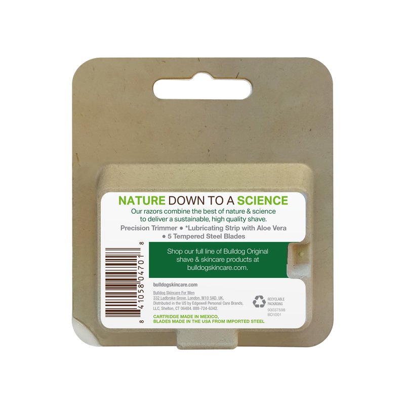 - The razor blade refills pack is designed with simplicity and ease of use, embodying Bulldog's straightforward skincare approach.