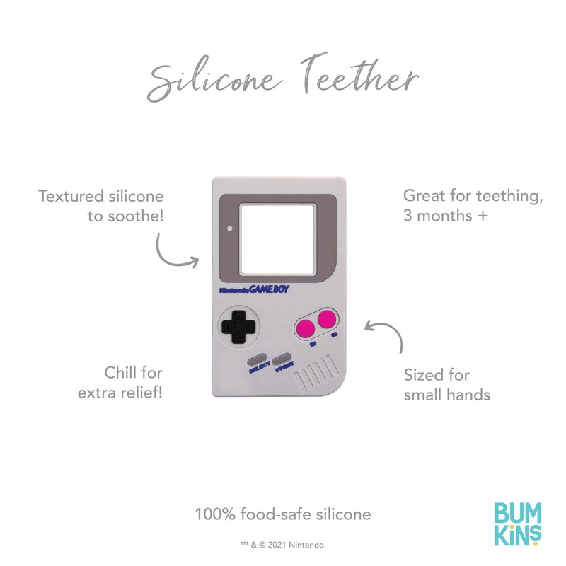 Bumkins Baby Teething Freezer Toy Keys Rings, Soft Flexible Silicone Pacifier, Safe to Chew, Cool Teether Gum Relief, Essentials for Babies 3 Months, Freezable, Sensory Textured, Nintendo Gameboy