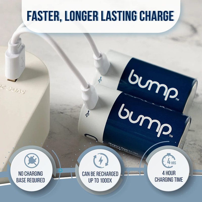 - πβ‘ SUSTAINABLE & COST EFFECTIVE: BUMP D Rechargeable Batteries are the more sustainable, superior, and money saving solution for all your battery needs, as they can be recharged up to 1000+, reducing waste and money spent.