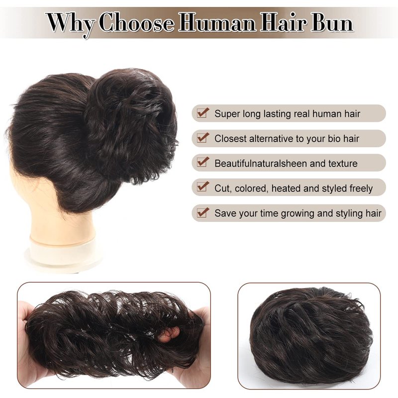 - Material: This messy bun hair piece Human Hair. We are 100% human hair, The wig is soft, well-managed, and fits perfectly on the head like your own hair.