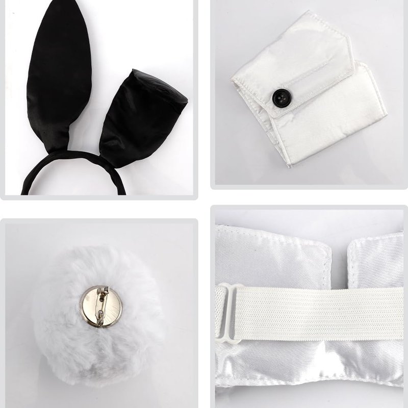 - Package Content:You will receive a women's bunny costume set that includes a bunny ear headpiece, collar with bow tie, a pair of cuffs, bunny tail, and lace bell neckline knot, a must-have accessory to create the bunny look.