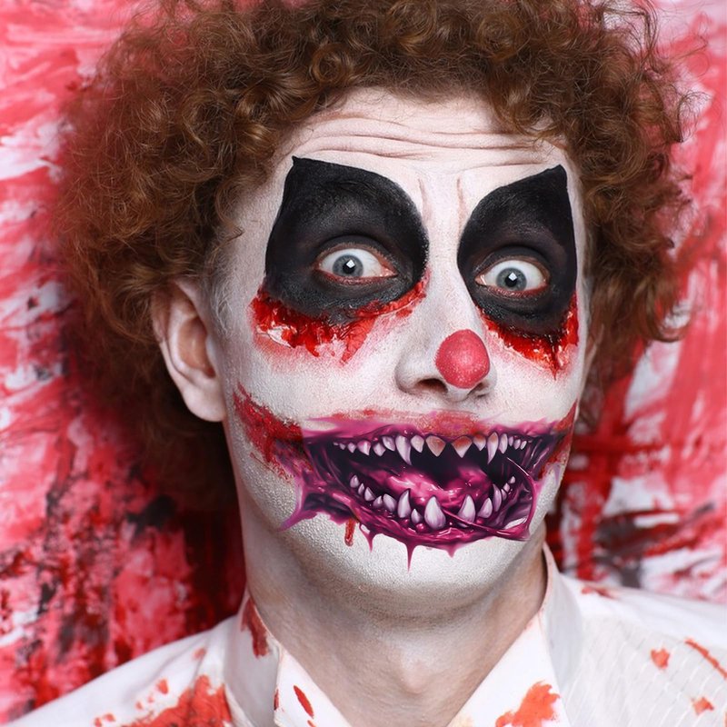 Halloween Prank Makeup Temporary Tattoo, 12pcs Clown Horror Mouth Fake Tattoo Stickers for Adults Kids, Halloween Decorations Tattoos Decals Kits Prank Props for Halloween Cosplay Party