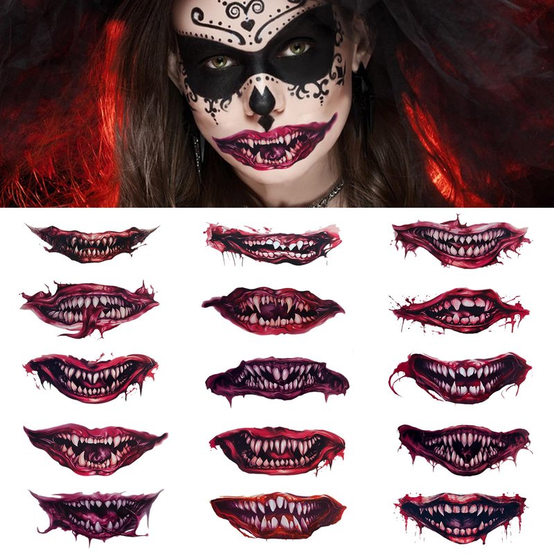 - 【Lip temporary tattoo halloween】 3D appearance makes realistic tattoos out of comparatively vivid stickers. Lively tattoos used in cosplay, masquerade or Halloween party will contribute to these activities, great fake tattoos can make people look like vampires and zombies.