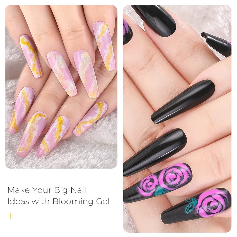- There are endless options with this gel : Suggest searching different blooming gel methods used, such as flowers, abstract, marble and so on