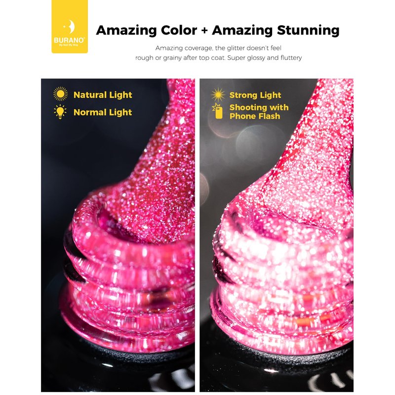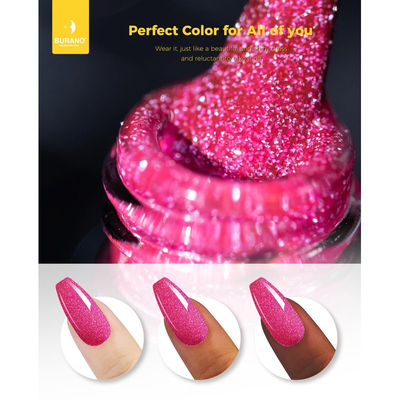 - 💙【Suit for Beginners & Nail Salon Pro Use】Easy for home DIY, get salon effect at home. BURANO have created Sparkle Reflective Shiny Nail Polish for you. Best choice for beginner Nail Art Reflective Diamond Gel Polish!