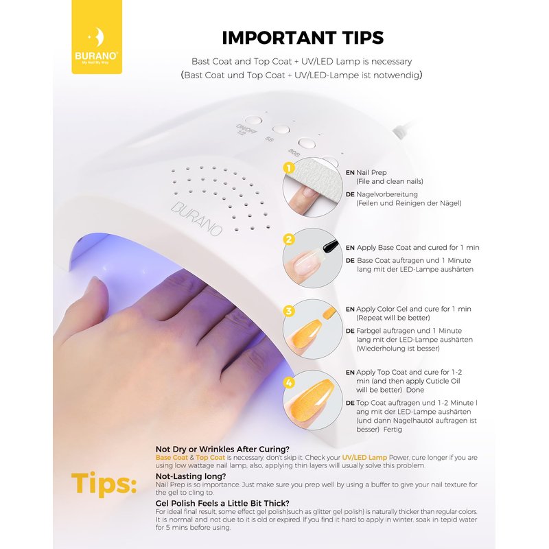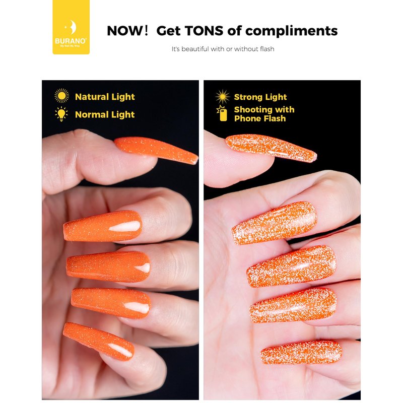 - Suit for Beginners and Nail Salon Pro: Easy for home DIY, get salon effect at home. BURANO have created Sparkle Reflective Shiny Nail Polish for you. Best choice for beginner Nail Art Reflective Diamond Gel Polish
