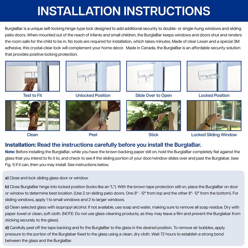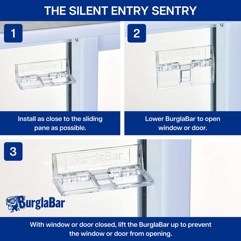 - Easy To Install: The Burglabar patio door lock is simple to install - no tools required - and its crystal-clear design easily blends in; This versatile child-proof door lock can be used as a sliding door security bar or a sliding window lock