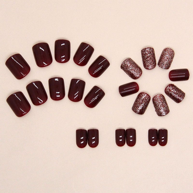 Burgundy Press on Nails Short Square Fake Nails Glossy False Nails with Silver Glitter Designs Full Cover Acrylic Nails Fall Glue on Nails Short Artificial Nails for Women 24Pcs