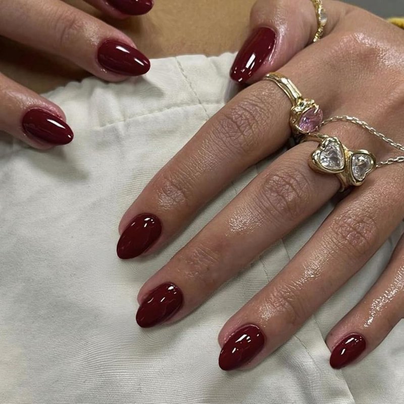 Burgundy Wine Red Press on Nails Short Almond Fake Nails Press ons, Solid Color Glue on Nails Short False Nails, Medium Almond Nails Oval Round Shaped Nails for Women, 24Pcs Natural Acrylic Gel Nails