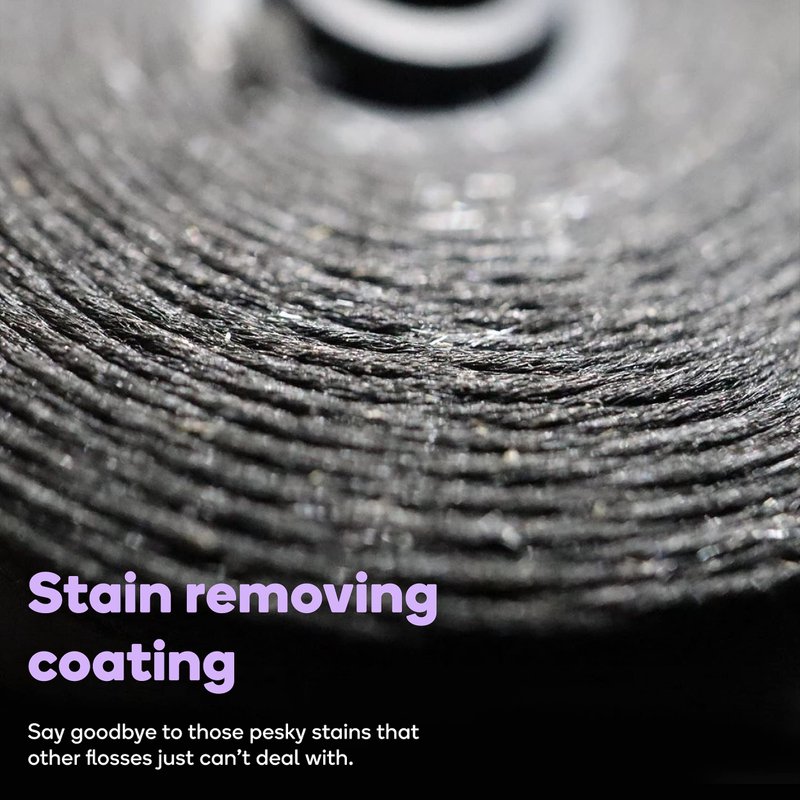 - BLACK FLOSS LETS YOU SEE WHAT YOU REMOVE: Black, woven floss gives you the instant satisfaction of seeing what comes out from between your teeth.