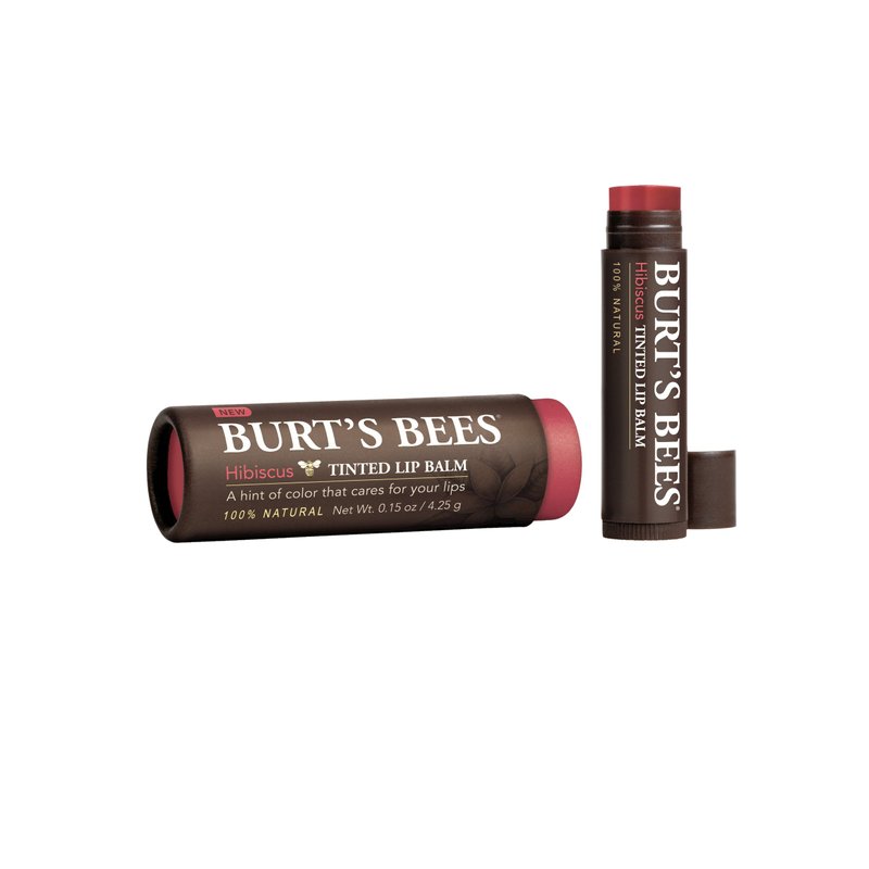 - LIP CARE: Add a hint of sheer, pretty red color with Burt's Bees Hibiscus tinted lip balm for a natural, everyday look
