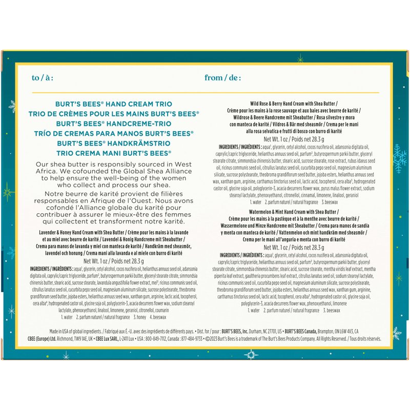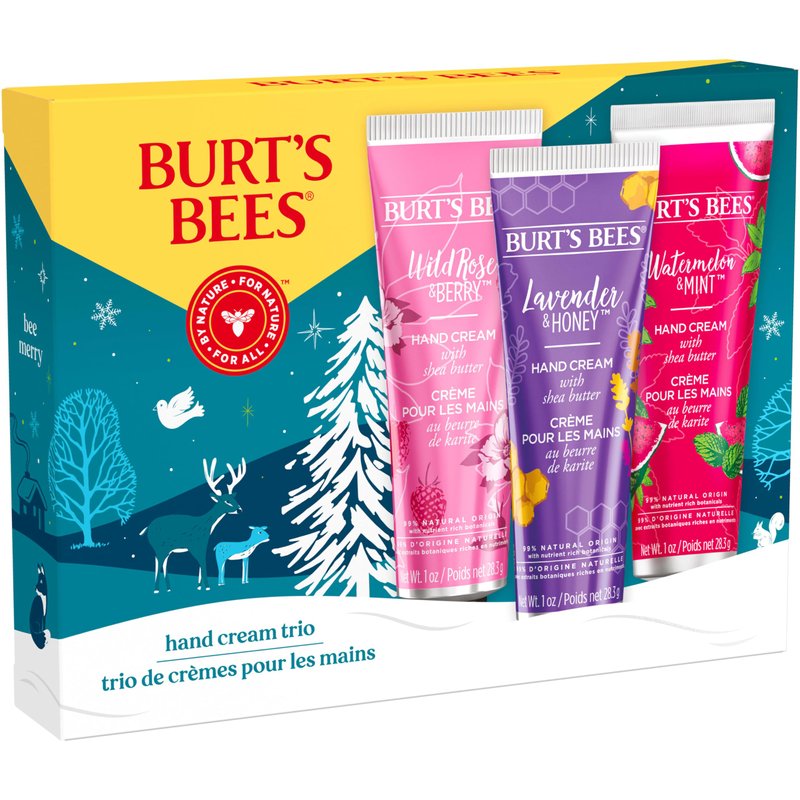 - PERFECT HOLIDAY GIFTS FOR HER: One Burt's Bees Hand Cream Trio Gift Set in festive holiday packaging that's a ready-to-give present for your favorite people—no wrapping required