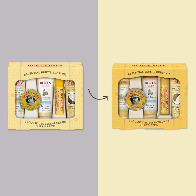 - SKIN CARE PRODUCTS: Pamper from head to toe with this giftable set including 5 travel size Burt's Bees favorites: Soap Bark and Chamomile Deep Cleansing Cream, Hand Salve, Milk & Honey Body Lotion, Coconut Foot Cream and Beeswax Lip Balm; Package may vary