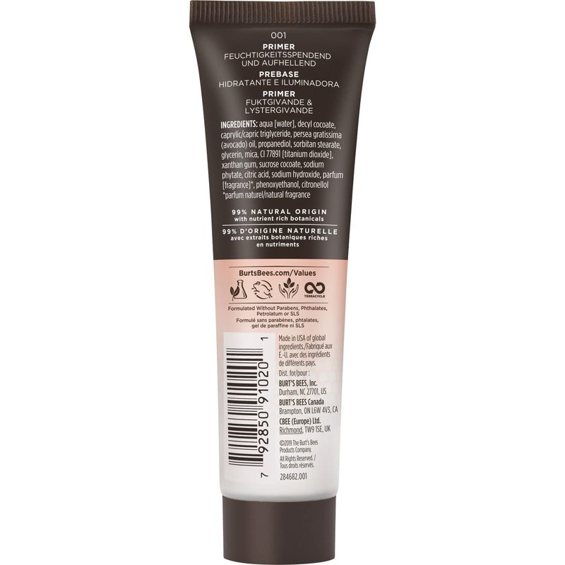 Burt's Bees Goodness Glows Face Primer illuminates and hydrates your skin, creating a smooth canvas for long lasting makeup application or a flawless natural look. This lightweight, breathable makeup primer has a silky texture that applies and blends easily, and wont clog pores like silicone-based primer face makeup. Kind to your skin and to the earth, this natural makeup primer is formulated from 99% natural origin with nourishing ingredients like natural minerals and moisturizing avocado oil, and no parabens, phthalates, SLS, or petrolatum. Wear this Face Primer alone or under Burt's Bees Tinted Moisturizer or Foundation. Burt's Bees makeup makes you look good while it cares for your skin.