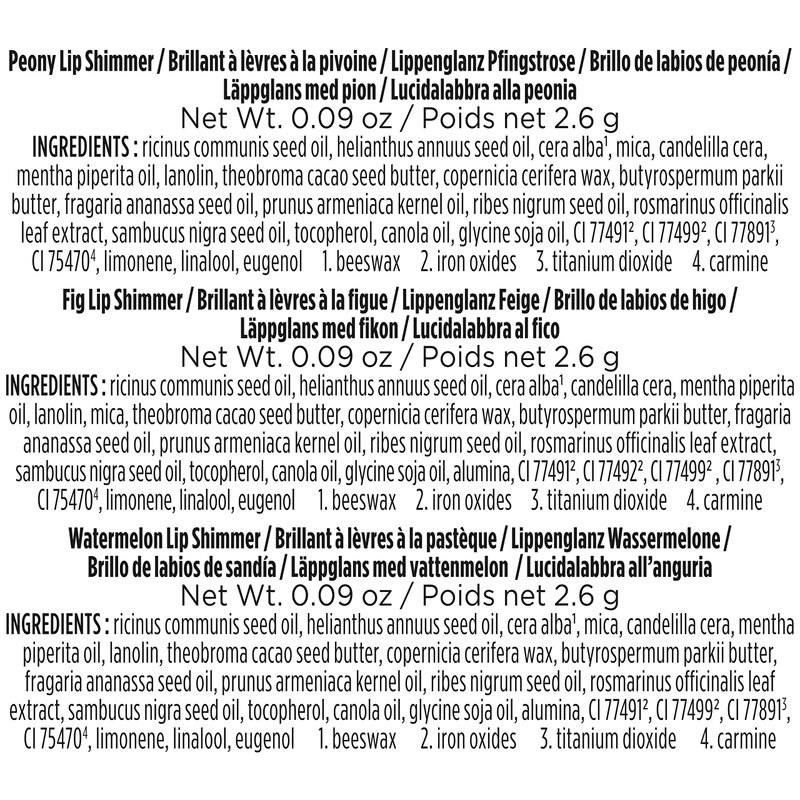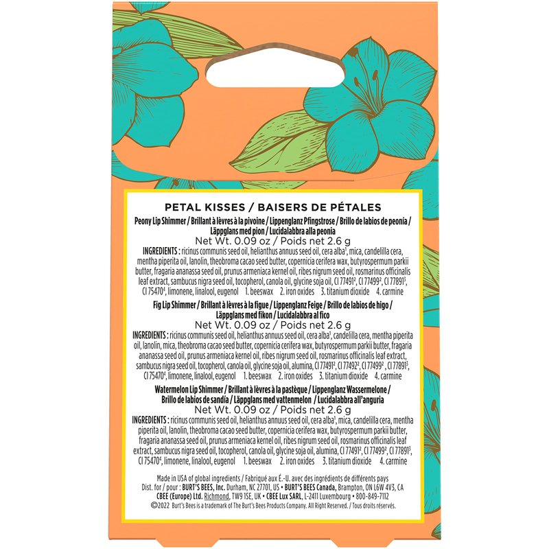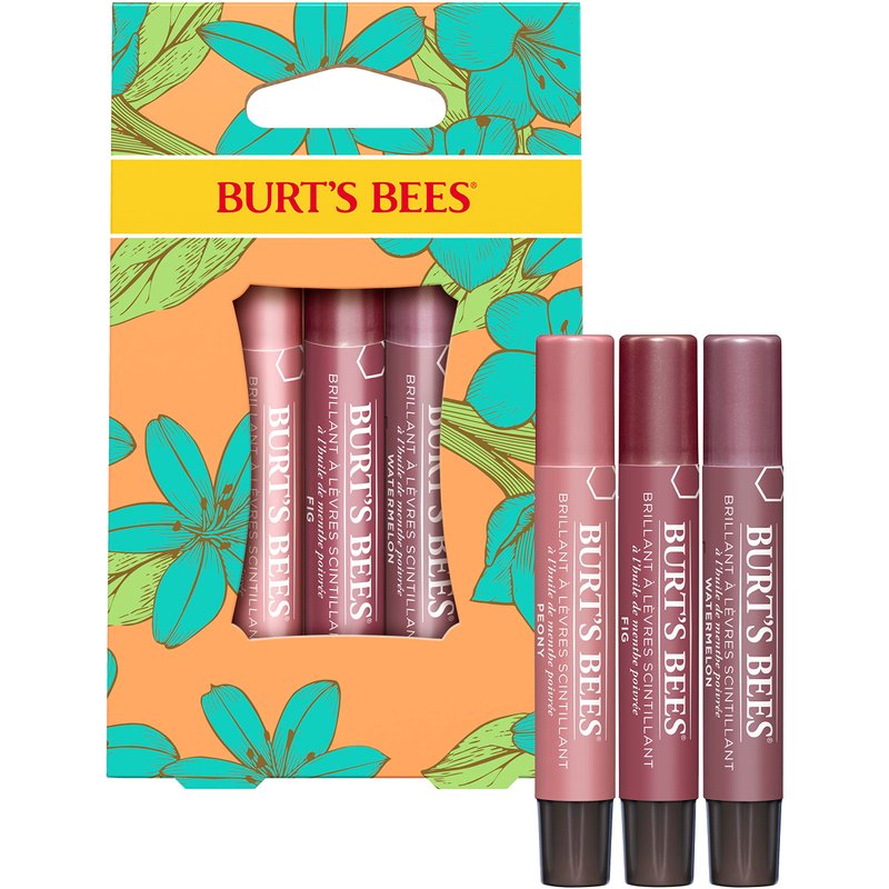 - BEAUTY GIFT SET: Pamper someone you love with a touch of luminescent color with Burt’s Bees Lip Shimmer for a natural everyday look in 3 flattering shades of Peony, Fig and Rhubarb