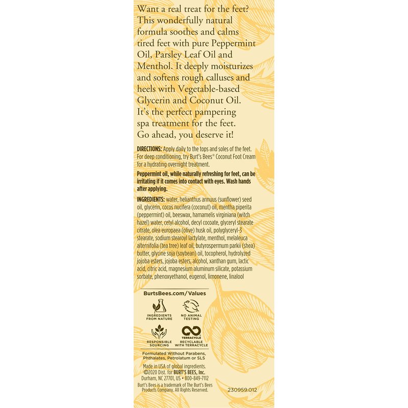 Burt's Bees Peppermint Oil Foot Lotion, 3.38 Oz (Package May Vary)