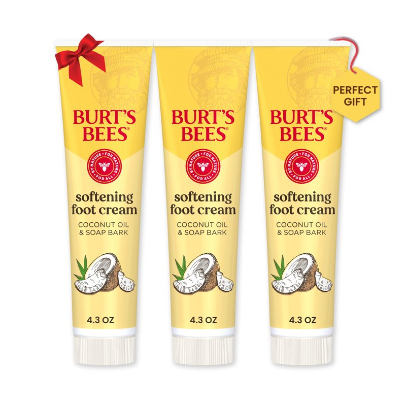 Burt's Bees Stocking Stuffers, Softening Foot Cream with Coconut Oil and Soap Bark, Natural Origin Skin Care Christmas Gifts, 4.3 Ounces (3-Pack)