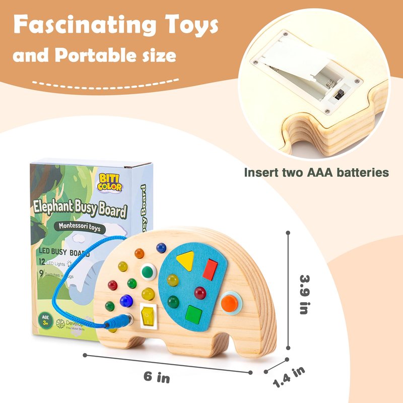 - Perfect Gift for Boys and Girls of All Ages! - Adorned with an adorable elephant shape, the busy board with light switch grabs attention wherever it goes, making it a hit with kids of all ages. It's the perfect gift for both boys and girls.