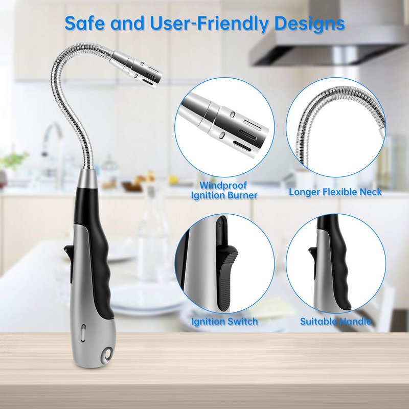 - ¡¾Flexible Long Neck & 360¡ã Rotation¡¿: The lighter with a 360¡ã flexible long neck protects you from burning your hand and can be rotated or bend to different angles at will. You can use it in various scenarios like BBQ, grill, fireplace, etc.