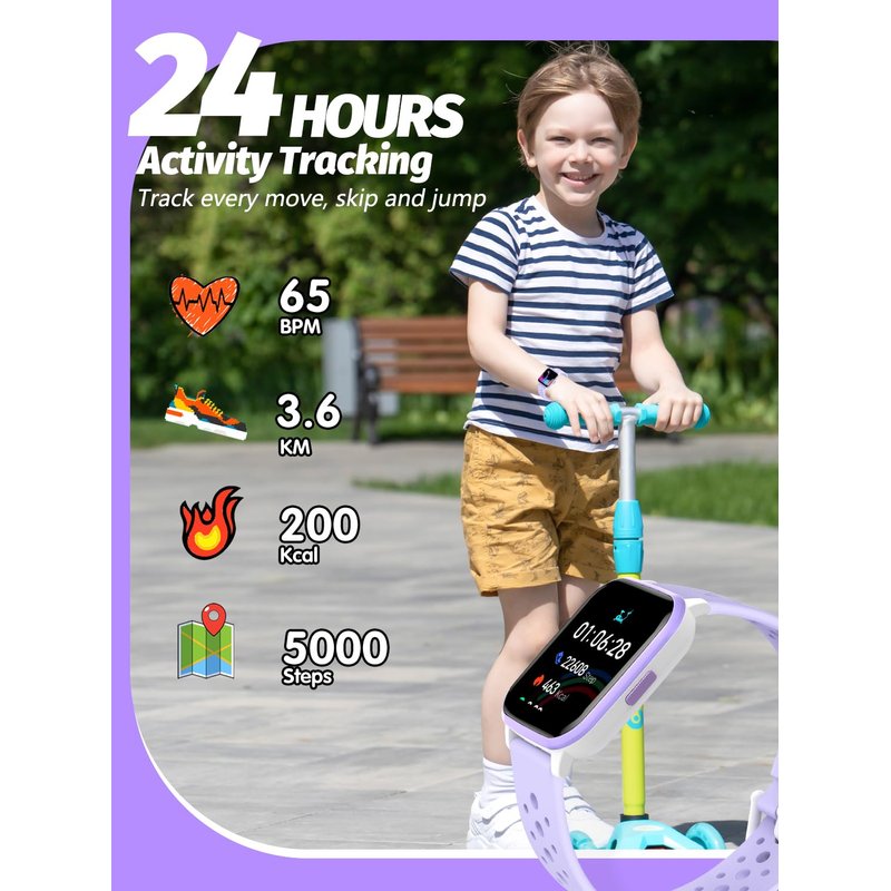 Butele Kids Smart Watch with Sleep Mode, 20 Sports Modes, 5 Games and Pedometer - Fun Birthday Gifts for 4-16 Year Olds (Purple)
