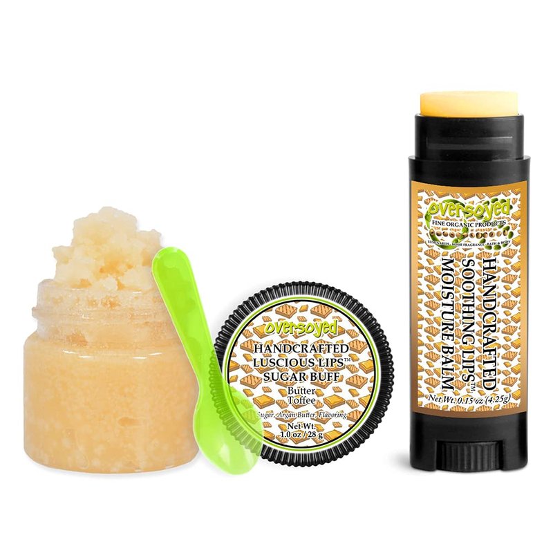 Butter Toffee Soothing & Luscious Lips by OverSoyed Exfoliator & Chapped Lip Repair Lip Care Combo | Artisan Handcrafted to Order Sweet Buttery Toffee Burnt Sugar Creamy Caramel Flavored Exfoliating Sugar Lip Scrub & Lip Moisturizer Balm Gift Set