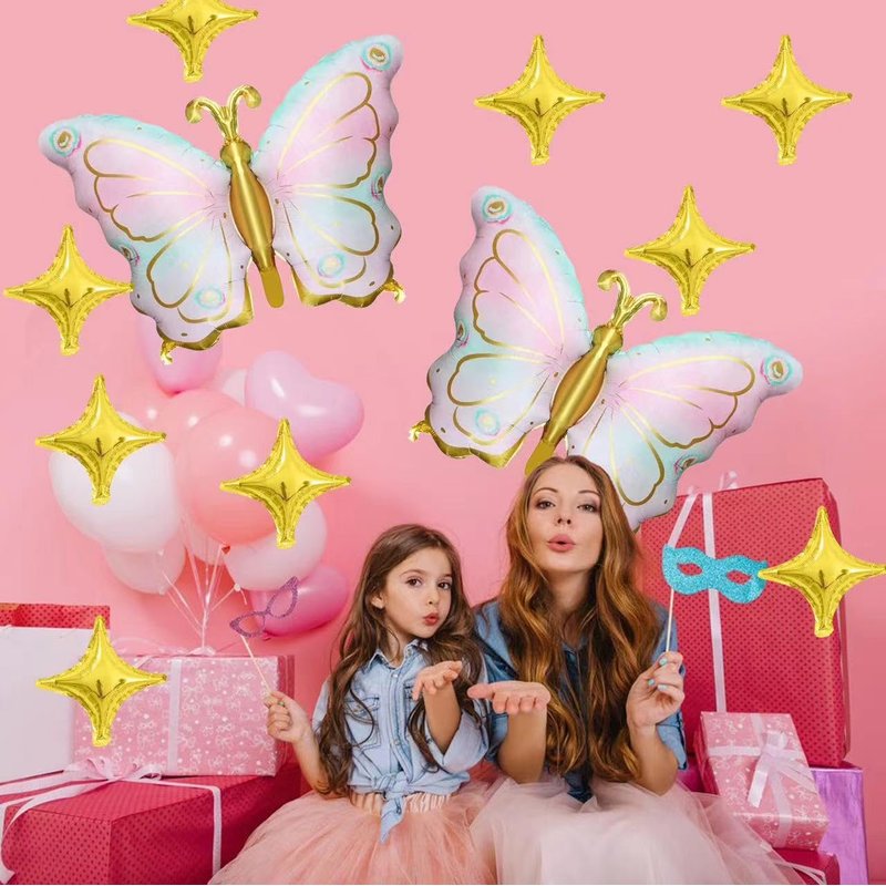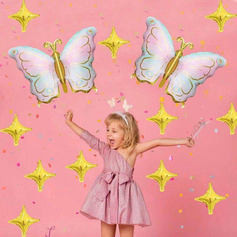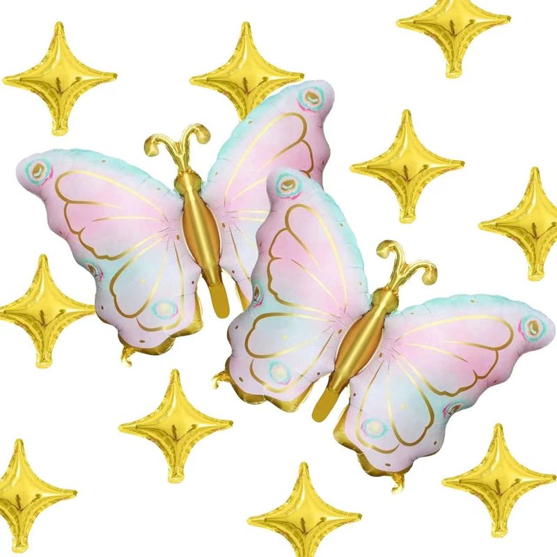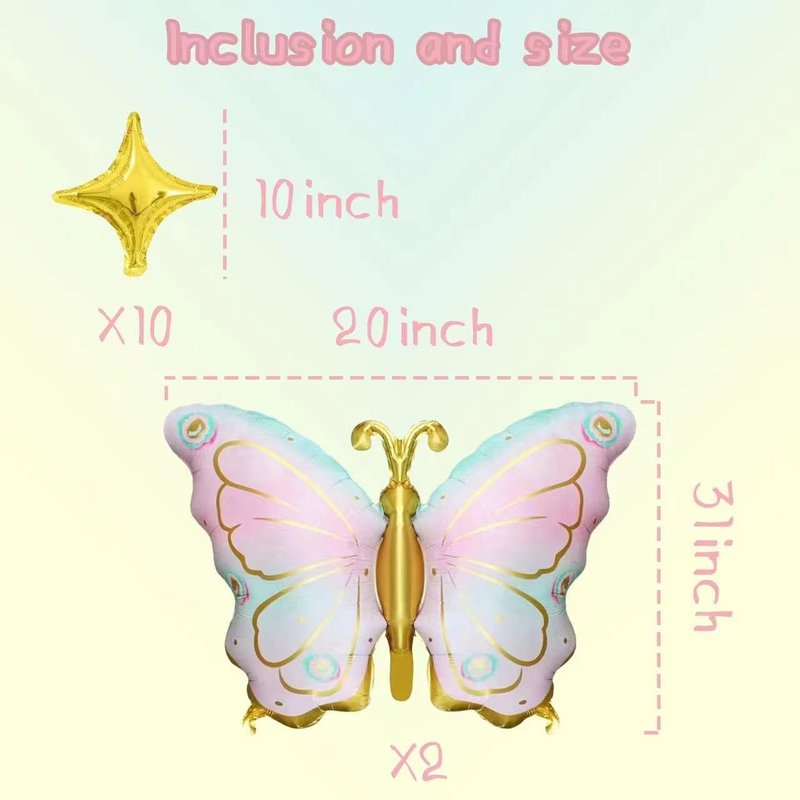 - Package: Content 1 pcs of pink purple butterfly mylar foil balloons, 10 pcs golden star balloons,they are enough to meet your need to decorate your birthday party.