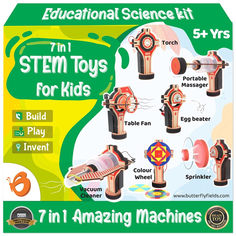 ButterflyEduFields 7in1 Electric Motor Robotic Science Kits for kids ages 6 8 10 , DIY STEM Toys for Kids, Science Experiment Kits for Boys & girls | Ultimate Electricity Kit. Science Kits for Kids Age 6-8-10 : Encourage Your kids to build their robots and enjoy the endless fun of DIY science activities. Perfect gifts recommended for teens age 6 years and up. Science Kits for Kids Age 6-8-10 : Encourage Your kids to build their robots and enjoy the endless fun of DIY science activities.