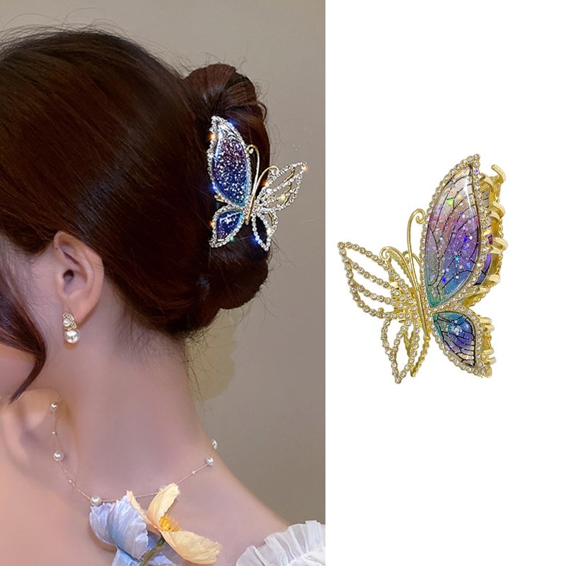 Butterfly Metal Hair Clips Gold Hair Claws Exquisite Butterfly Hair Jaw Clips with Rhinestones Glitters Design Strong Hold Hair Barrettes Hair Clips Elegant Hair Catch Clip for Thick Hair Thin Hair
