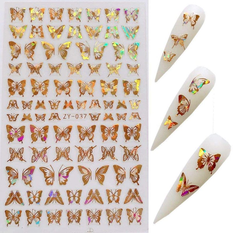 - OCCASIONS: Laser Butterflies nail stickers will be the best gift for your female friends, your mom, your wife. butterflies nail decals for acrylic nails are perfect for home nail DIY and professional nail salon. Butterfly stickers for nails are great for your fingernails and toenails decorations