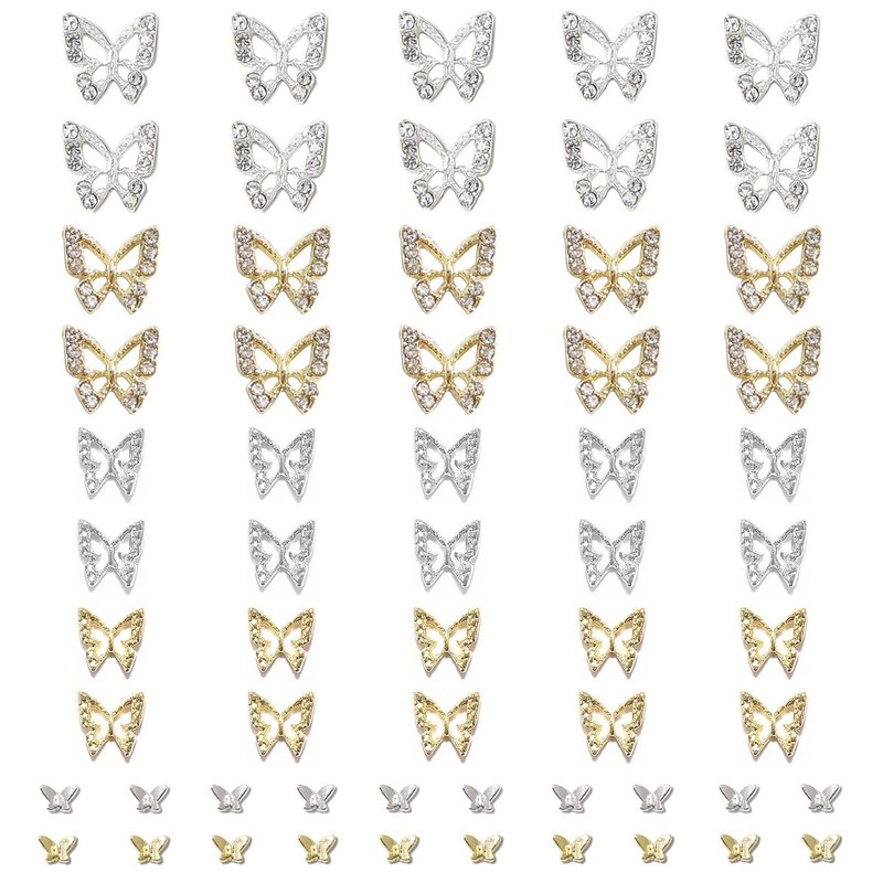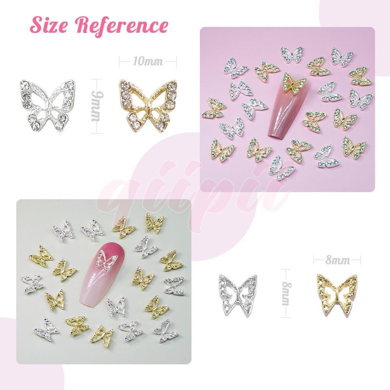 - ❤【40 Pcs Butterfly Nail Alloy Studs Charms】The metal Butterfly nail studs has special hollow design, can make your nails more attractive, 20pcs per color. For a beginner or a professional in nail art, Butterfly nail gems decorations can be fitted to nails easily. Apply nail gel or nail polish on nail, then put these shiny nail studs on the nails, cure them under UV/LED light, pretty and cute nail art finished. Butterfly nails supplies for nails are easy to use on natural and false nails.