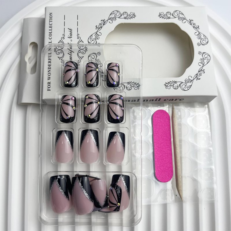 - Package Contains: You will get 24 pieces black coffin square press on nails in 12 sizes, 1 piece mini nail file, 24pieces nail jelly stickers and 1 piece wooden stick for removing false nails tips. No need to buy other things, you can get the nail salon-like effect.Butterfly stick on nails.