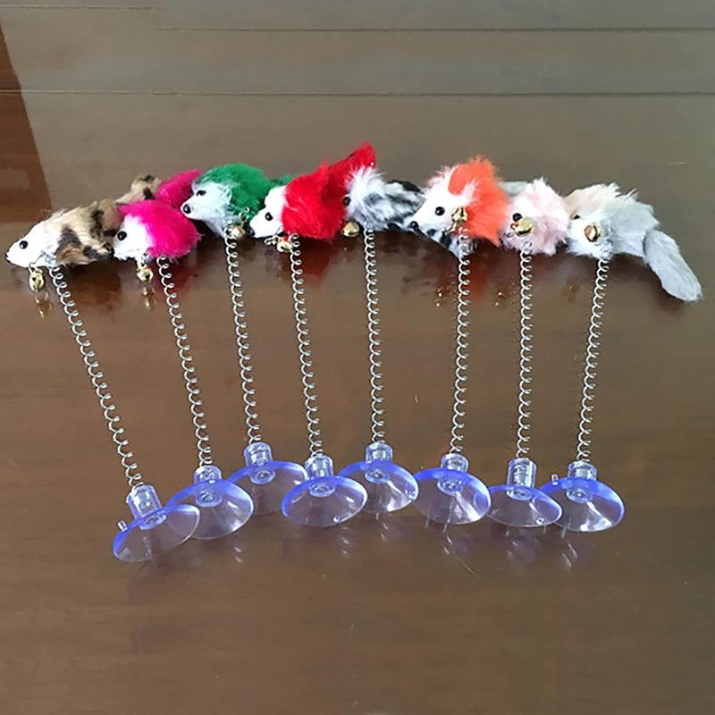 BWESOO Random Color Interactive Toys for Cats, Play Cat Toy Cat Toy Cat-Friendly Design Soft Feather Mouse Imitation Spring Toy Cat Mice and Animals Toys for Indoor Cat and Kitten Exercise