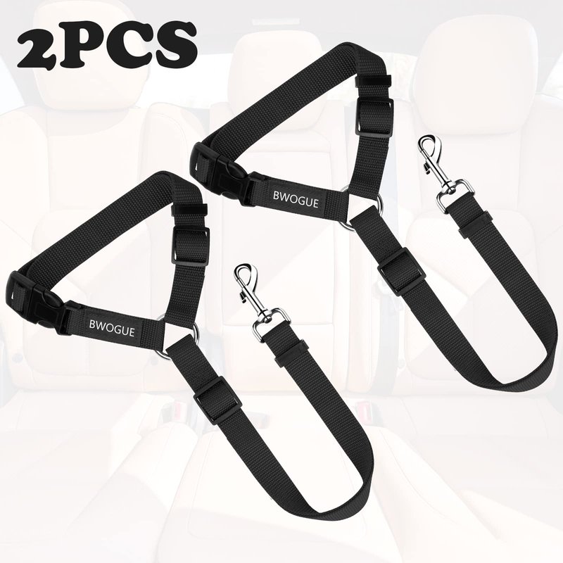 BWOGUE 2 Packs Dog Cat Safety Seat Belt Strap Car Headrest Restraint Adjustable Nylon Fabric Dog Restraints Vehicle Seatbelts Harness