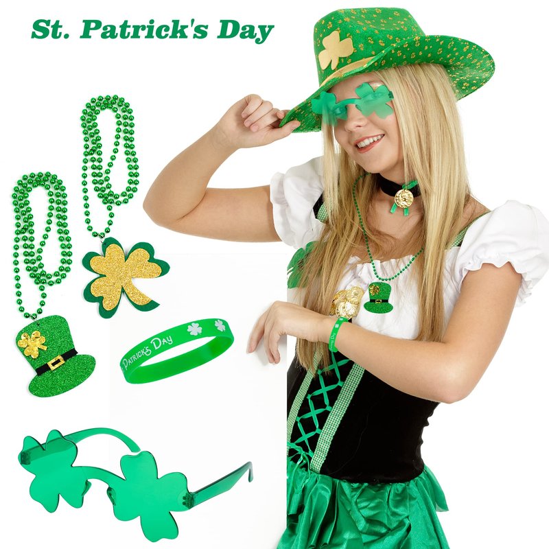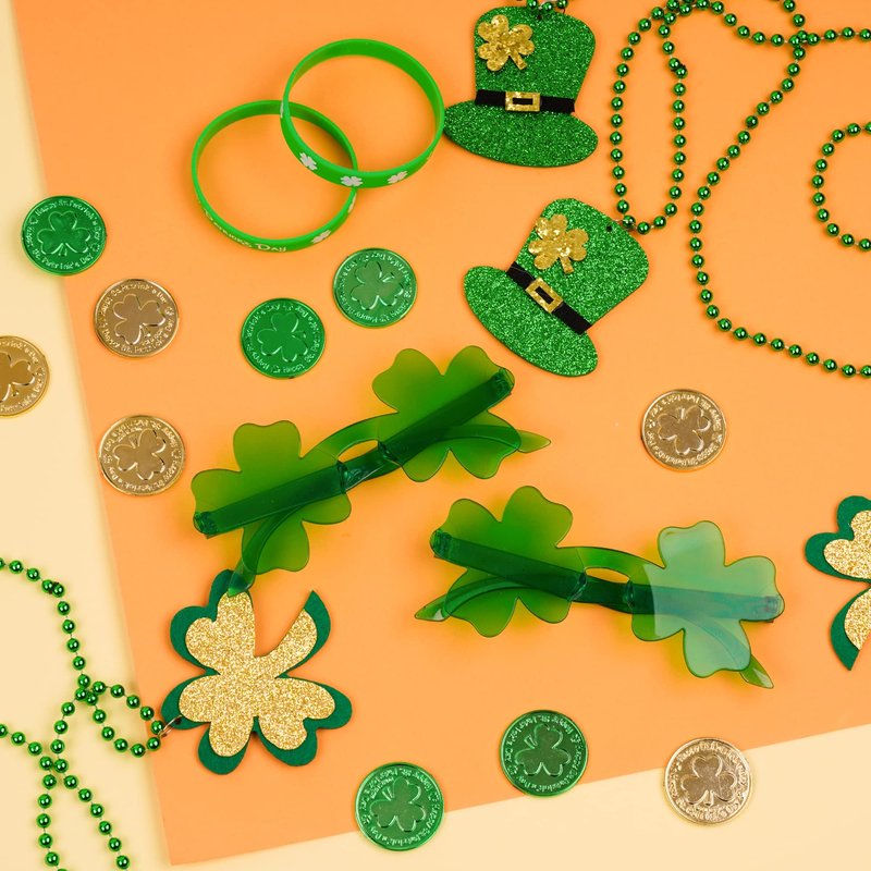 - 🍀St. Patrick's Day Costume Accessories: Our set is a shamrock theme, especially suitable for St. Patrick's Day decoration, which can bring you good luck. Necklaces, glasses, bracelets and copper coins are enough to add atmosphere to your Irish festival.